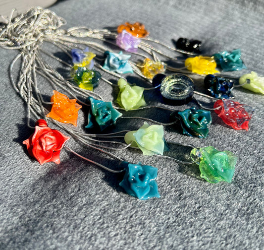 Headley's Glass Art Hand Blown Rose Pendant Necklaces
