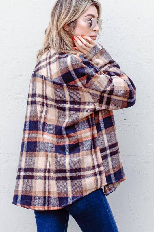 Curvy Girls Plaid Flannel Shirt Jacket