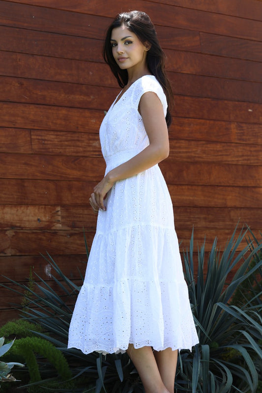 Lola P Eyelet Embroidered V Neck Midi Dress. Fall Clearance!