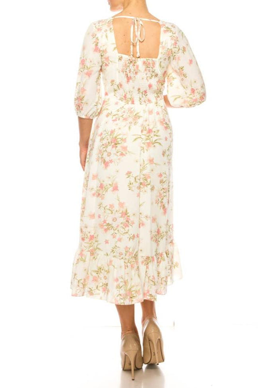 New Yorker's Apparels Three Quarter Sleeve Floral Midi Dress. Fall Clearance!