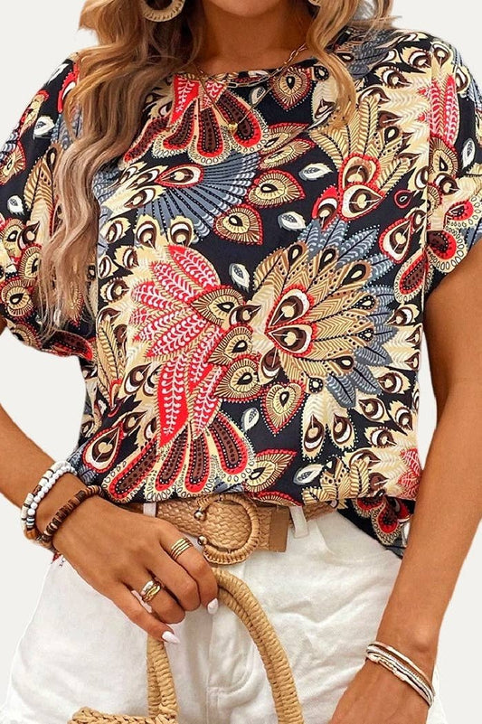 The Moment Collection Chic Floral Print Round Neck Short Sleeve Top