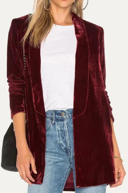 The Moment Collection Velvet Solid Open Front Lightweight Blazer. Fall Clearance!