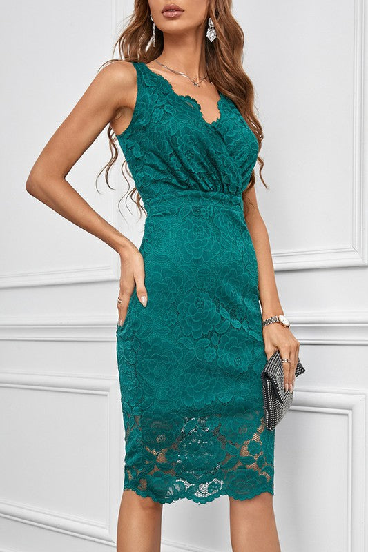 El Kanna Lace Deep V Neck Body Dress. Fall Clearance!