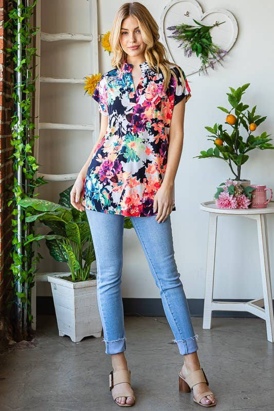 Sold outJostar Notch Neck Rolled Sleeve Top