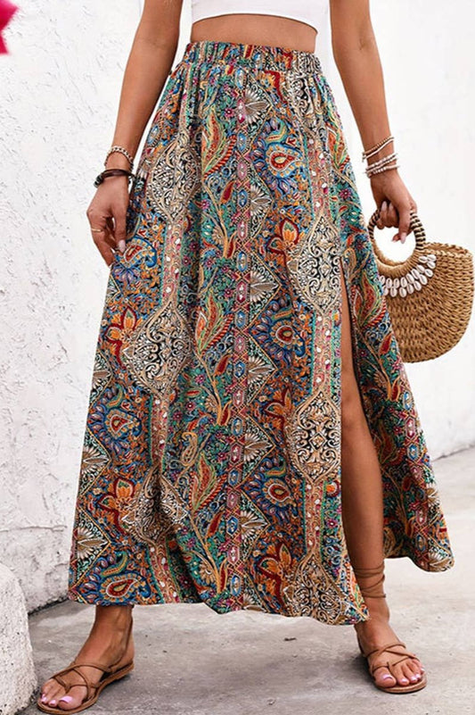 Lily Clothing Famous Style Print Slit A-Line Skirt