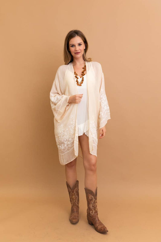 Leto Accessories Embroidered Floral Vine Lightweight Kimono