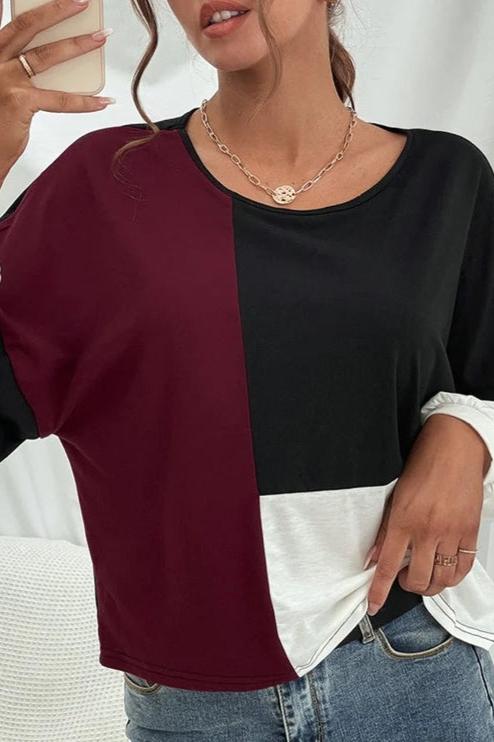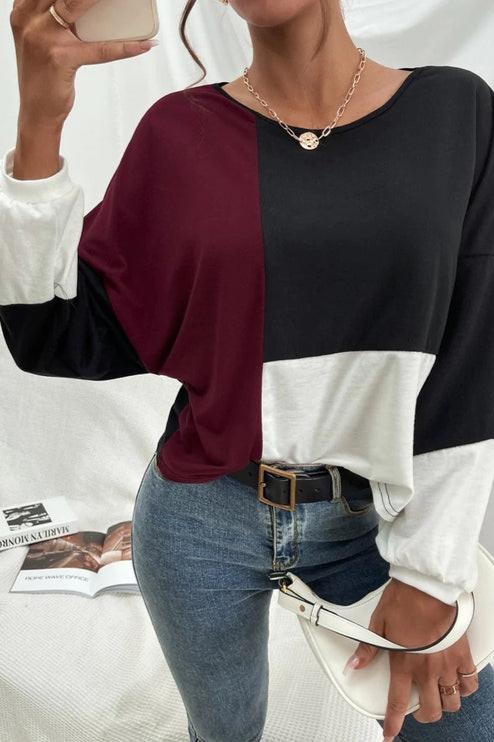 The Anna-Kaci sweater is detailed with a cool geometric color block design. Features a round neck-line, drop shoulder, long sleeves, and loose fit. Pair it with jeans and sneakers for a cozy look.