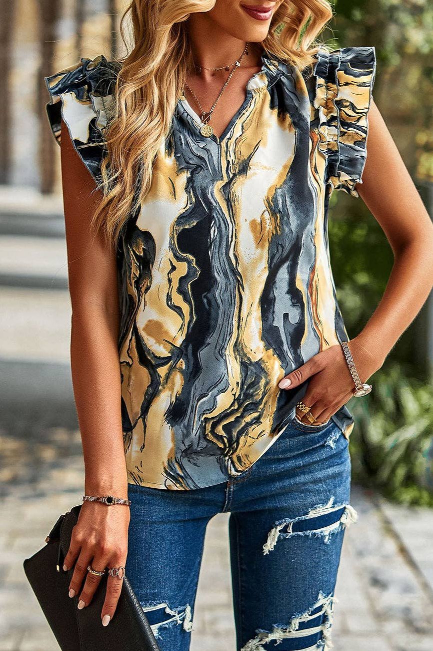 Anna Kaci Split V-Neck Ruffle Sleeve Blouse