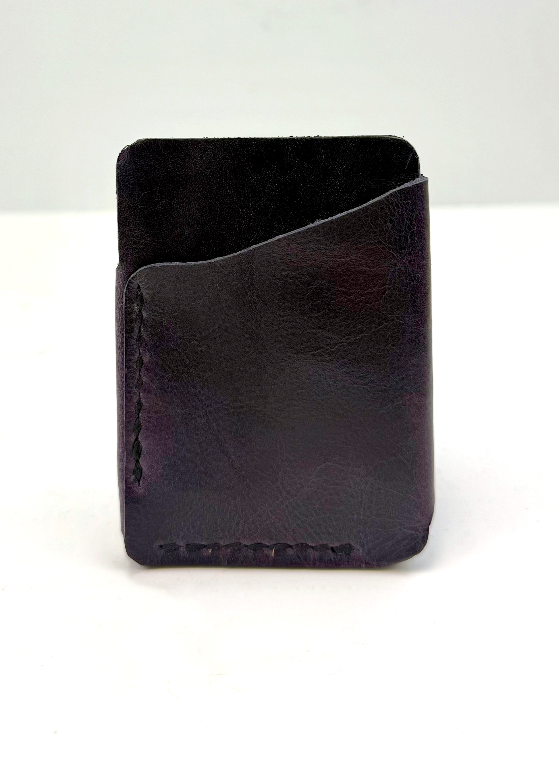Slim Purple Wallet. Item #131. Wallet details. 1 main compartment for cash or coins & 2 small compartments for cards. 4" x 2.75". $15.00.