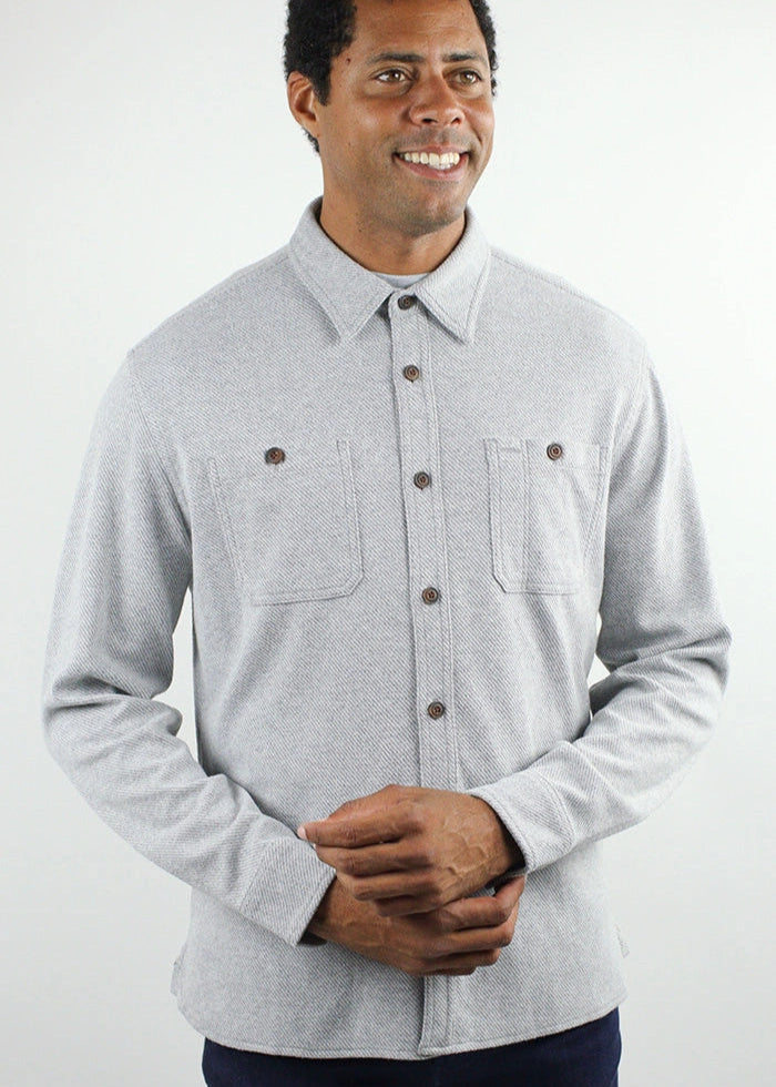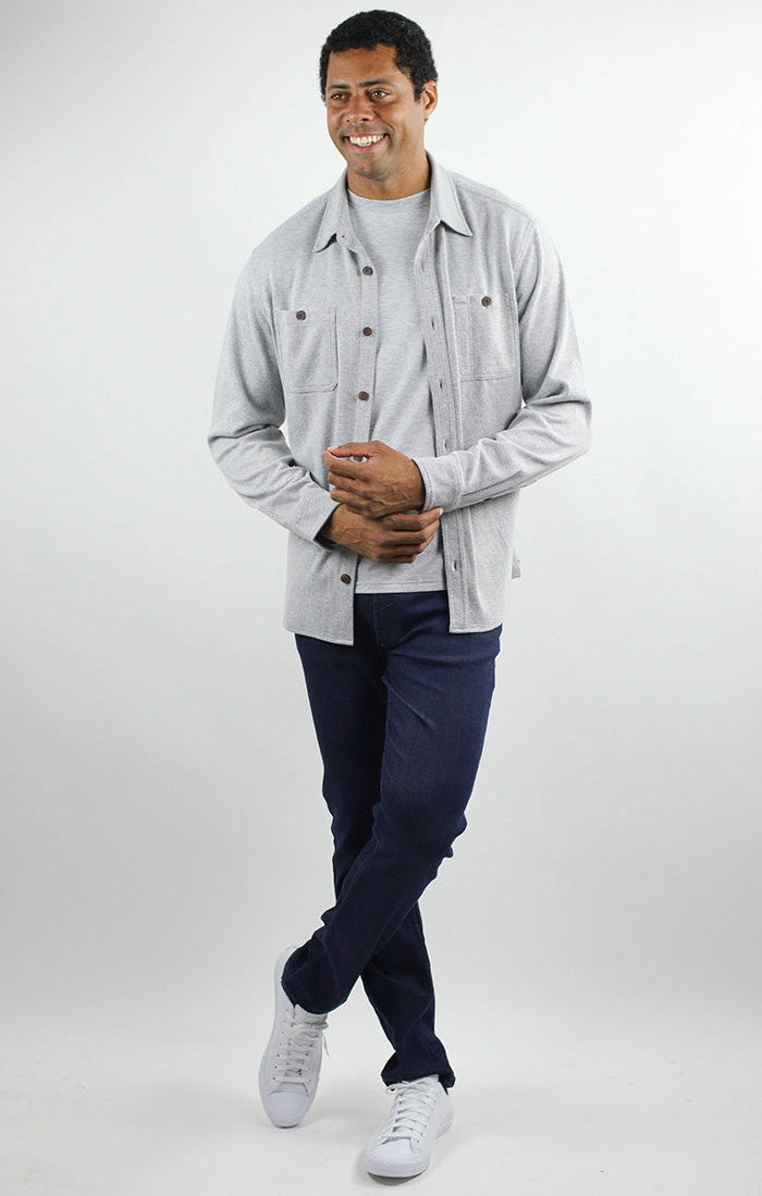 An exciting update to a wardrobe staple! The versatile look of a classic Workshirt, engineered in a insanely comfortable stretchy knit fabric and designed to feel like you're wearing your most comfortable cozy sweater.