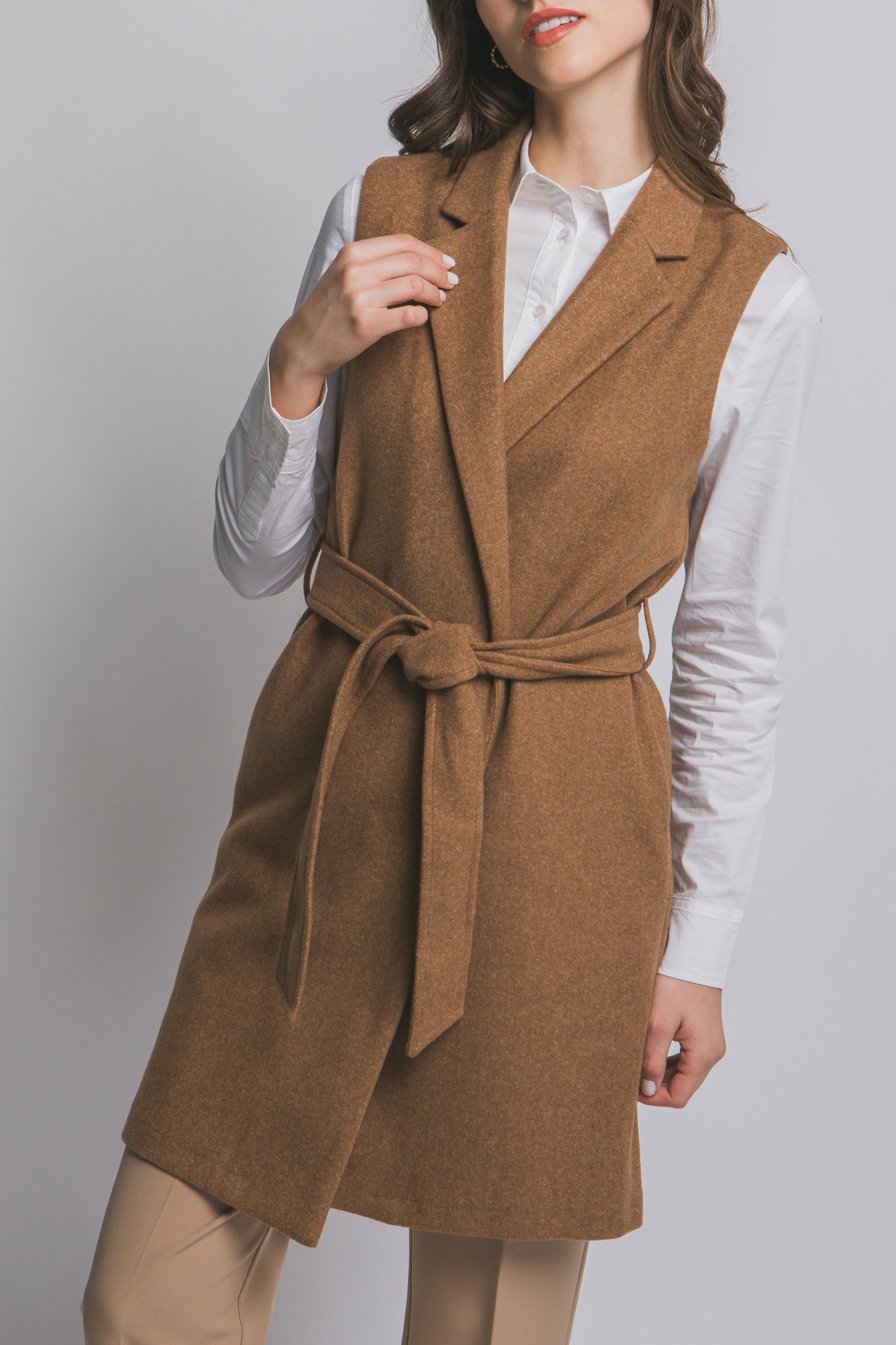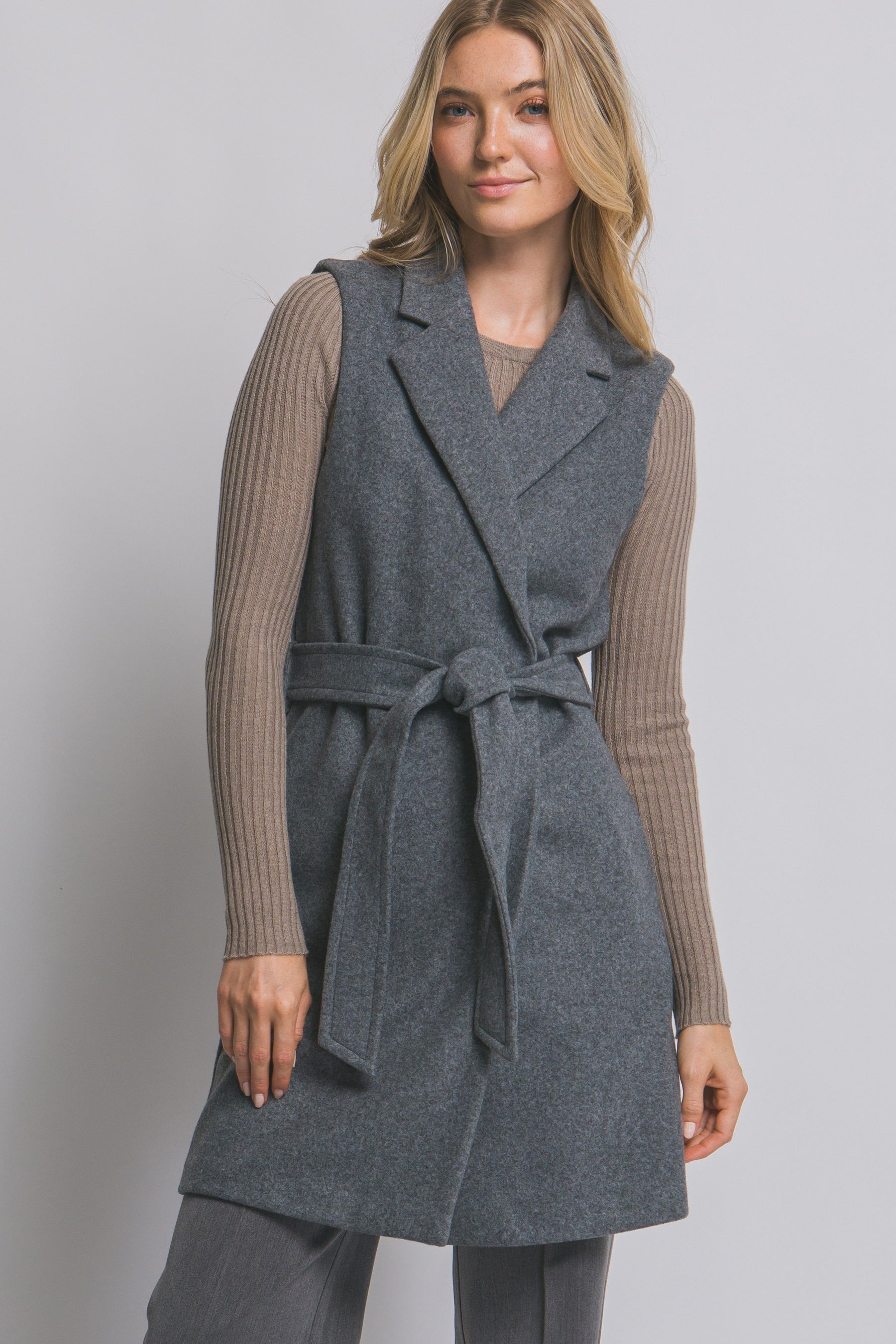 Love Tree Notched Lapel Sleeveless Coat Elevate your wardrobe with this sophisticated sleeveless coat that effortlessly transitions from season to season. Featuring a polished notched lapel collar that frames your face beautifully, convenient side pockets for everyday practicality, and a self-tie waist that lets you customize your silhouette. Crafted from premium quality materials, this piece delivers both chic style and lasting durability. Whether layered over your favorite sweater or worn as a standalone statement piece, this coat brings refined elegance to any outfit while keeping you comfortable and put-together.
