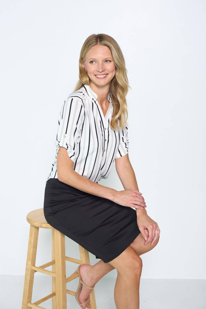 This versatile shirt is designed to make you look and feel your best! The mandarin collar neckline adds a touch of sophistication, while the roll tab short sleeves provide a casual yet polished look.