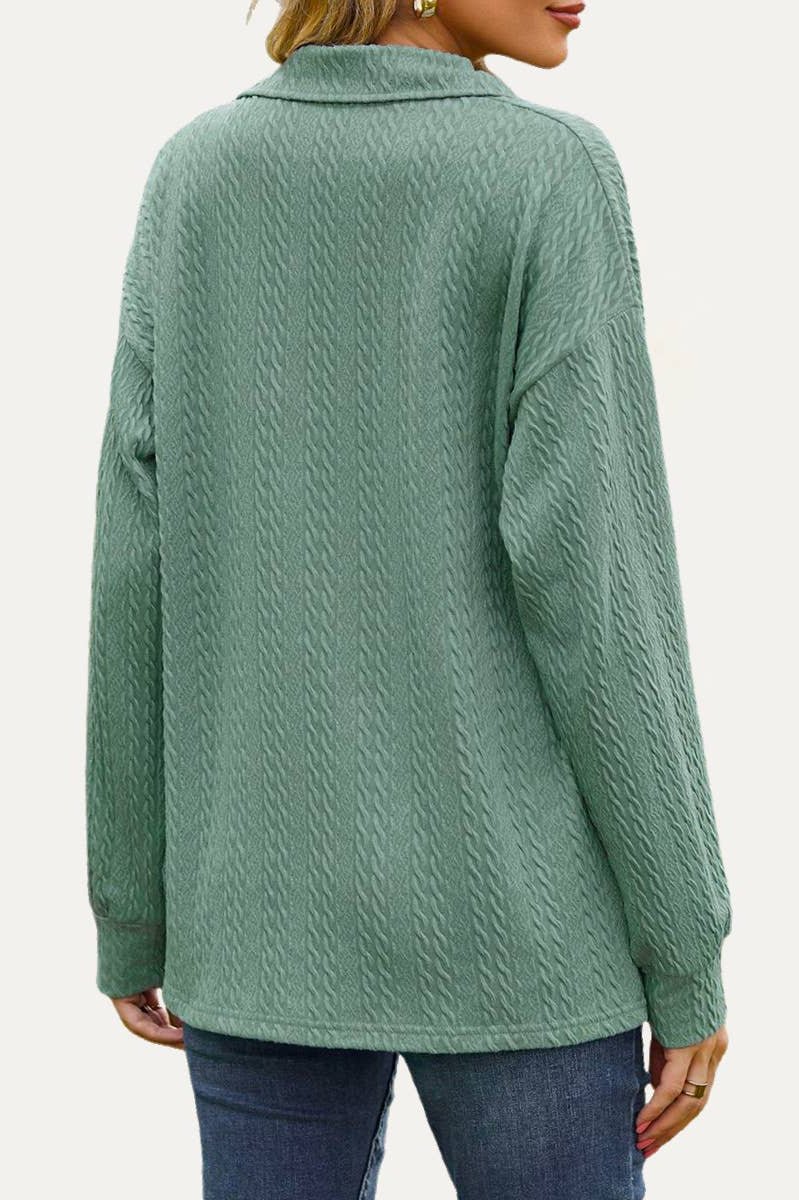 The Moment Collection Daily Basics Cable Knit Collared Long Sleeve Top